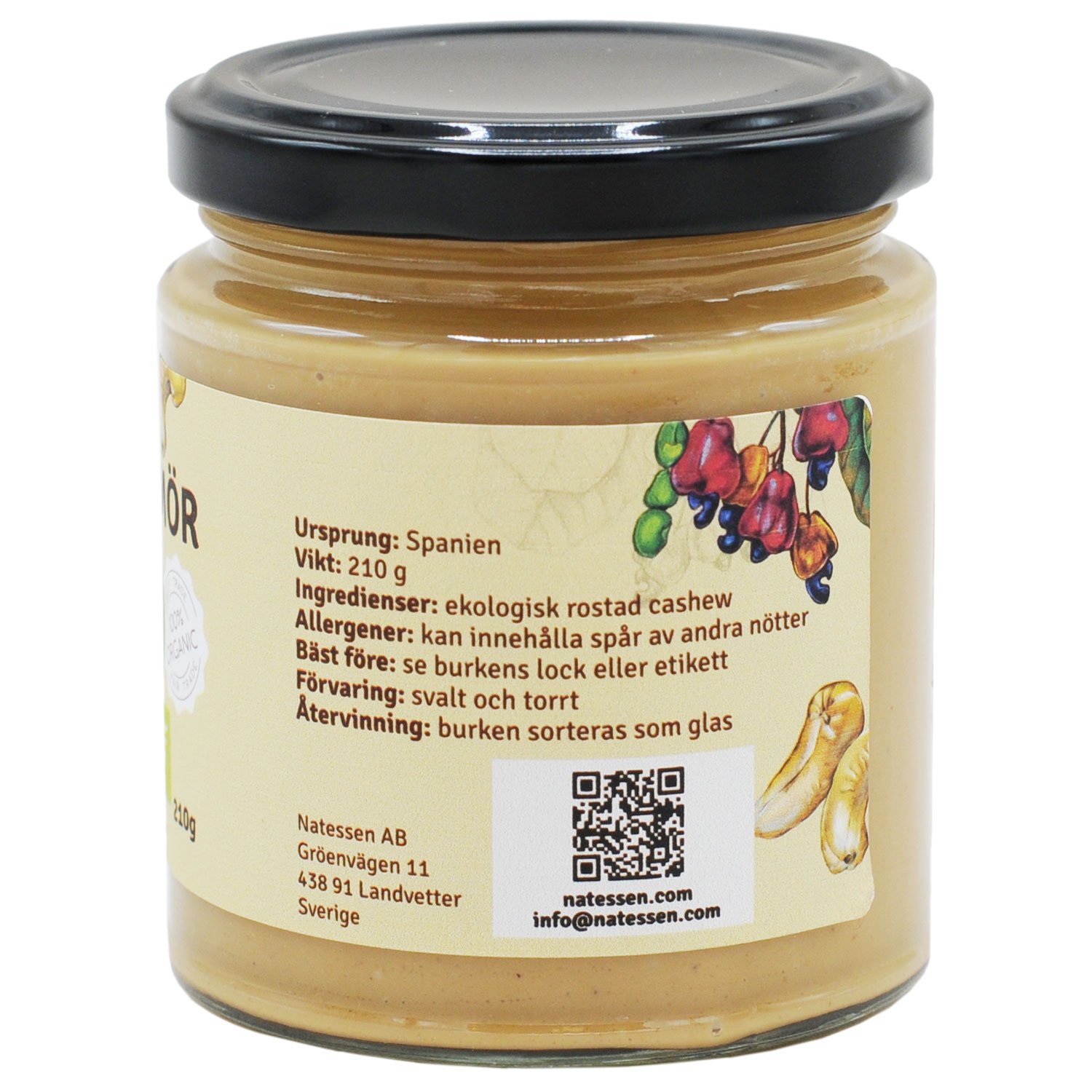 Gillar du våra cashewnötter? Då borde du verkligen prova vårt fina, ekologiska cashewsmör gjord av rostade cashewnötter.Specifikation